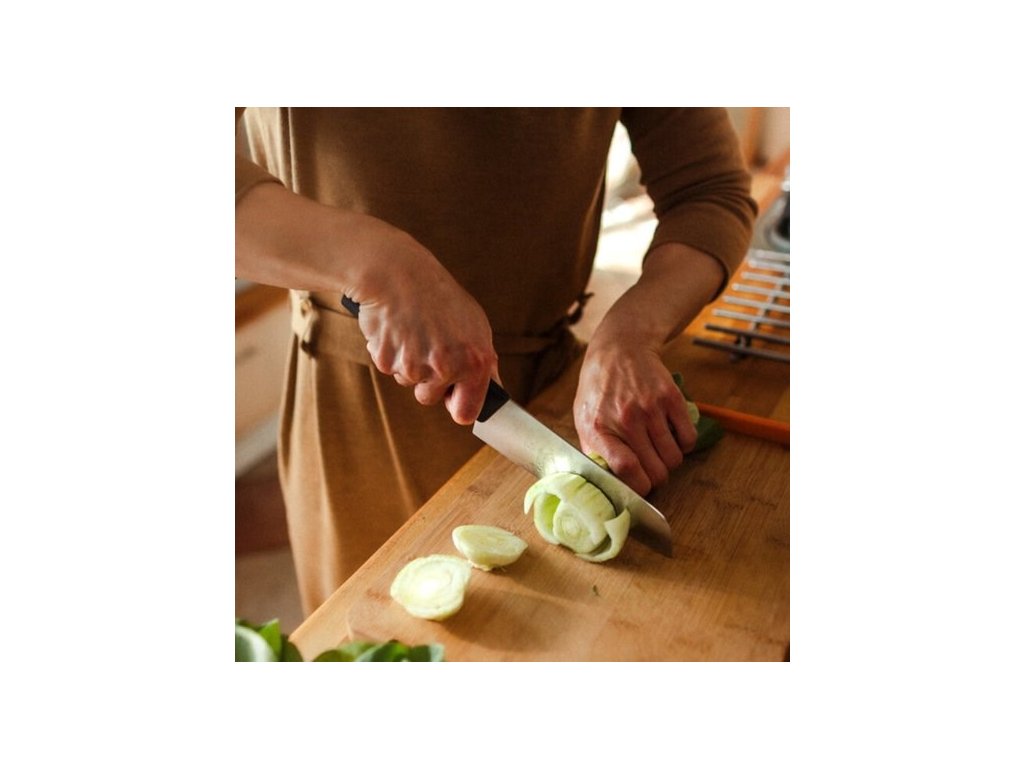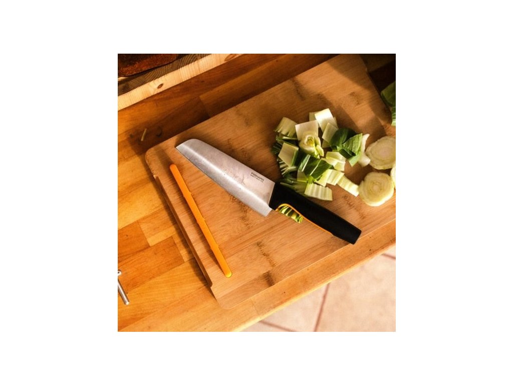 Santoku nůž Fiskars Functional Form ™ je univerzální nůž asijského stylu se širokou čepelí navržený pro pohodlné používání a snadnou údržbu Ideální pro přípravu masa, ryb a zeleniny Odolná čepel z japonské nerezové oceli Ergonomická rukojeť s povrchem SoftGrip ™ v místě uchopení Hluboký chránič prstů poskytuje pohodlné a bezpečné držení Lze mýt v myčce na nádobí Délka čepele 160 mm Tvrdost čepele HRC 52 Vysoký řezací výkon (testováno podle metodiky CATRA) Navrženo ve FinskuDoplňkové parametry