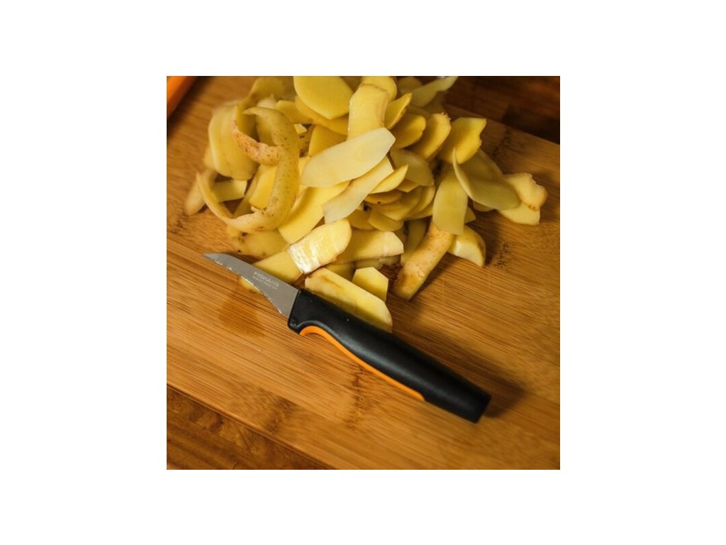 Loupací nůž se zahnutou čepelí Fiskars Functional Form ™ je navržený pro pohodlné používání a snadnou údržbu Ideální pro oloupávání kulaté kořenové zeleniny Odolná zahnutá čepel z japonské nerezové oceli Ergonomická rukojeť s povrchem SoftGrip ™ v místě uchopení Hluboký chránič prstů poskytuje pohodlné a bezpečné držení Lze mýt v myčce na nádobí Délka čepele 68 mm Tvrdost čepele HRC 52 Vysoký řezací výkon (testováno podle metodiky CATRA) Navrženo ve FinskuDoplňkové parametry