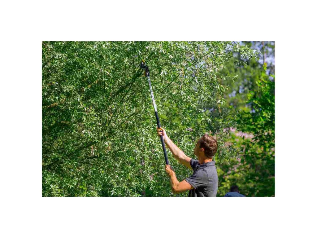 Nastavitelná hlava nůžek a lehký střižný mechanismus zajišťují rychlé a bezpečné stříhání větví z velké vzdálenosti.