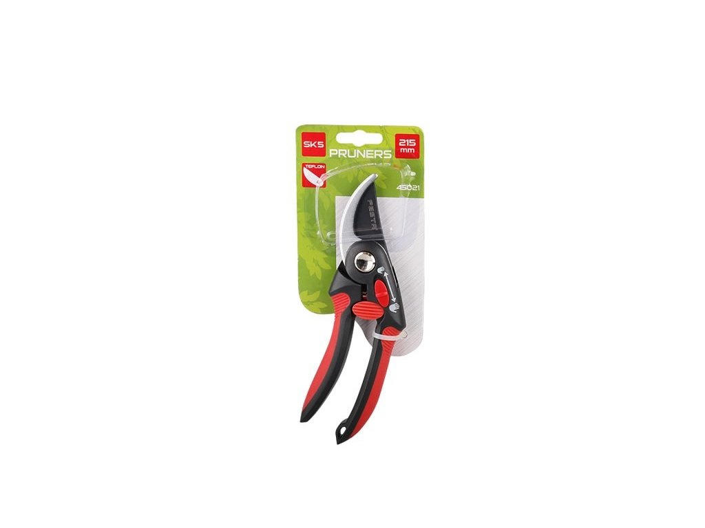 Zahradnické nůžky, kvalitníplastové ručky ergonomicky tvarované s měkčenou gumou v dlaňové části, půlkulatý břit s nepřilnavou vrstvou, celková délka je 21 cm, použití : střih dřevin a rostlin, zahradnické a dekoraterské práce, balení : blistr s eurootvorem.