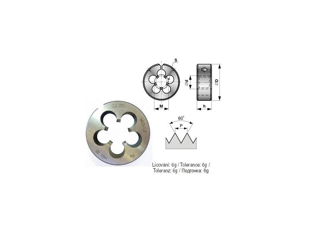 Závitové kruhové čelisti DIN EN 22 568, NO/CS/WS. Rozměry a podrobnosti: M 4 , P: 0,70 mm, OD: 20 mm, h: 5 mm, S: 3 , Od: 3,91 mm.Doplňkové parametry