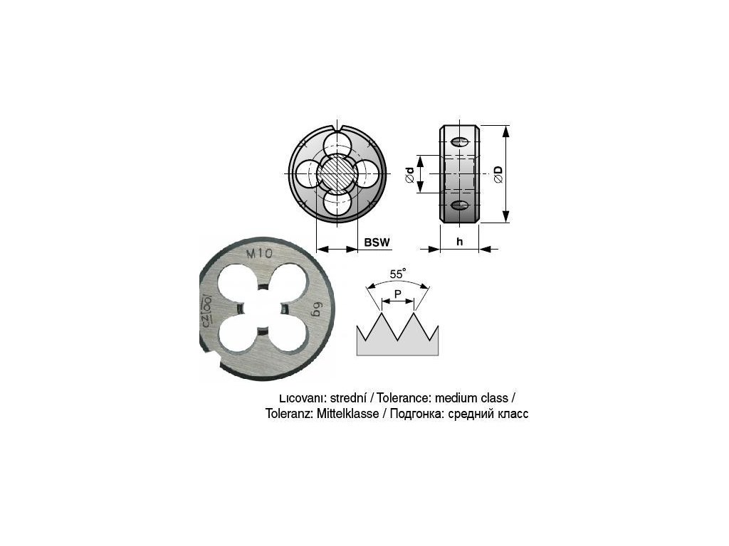 Závitové kruhové čelisti DIN EN 24 231, NO. Rozměry a podrobnosti: G 1/4\", z/1\": 19, P: 1,337 mm, OD: 38 mm, h: 10 mm, S: 5, Od: 13,03 mm.Buďte první, kdo napíše příspěvek k této položce.