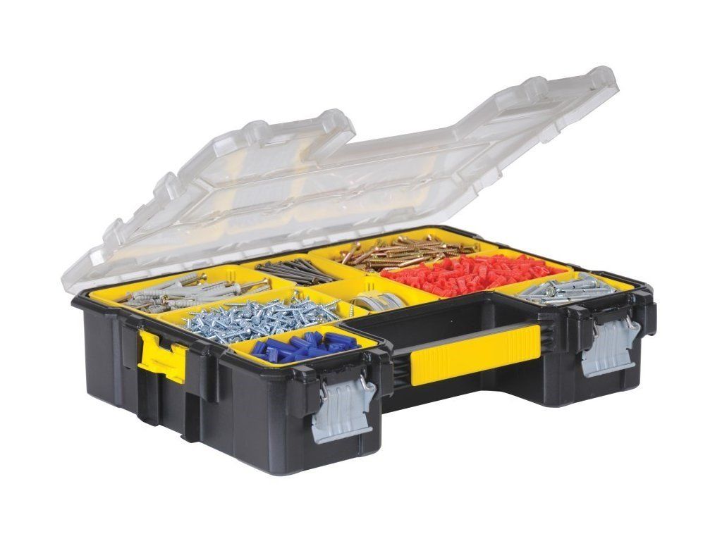 Průhledné nerozbitné víko uzamyká přihrádky a chrání jejich obsah před vysypáním