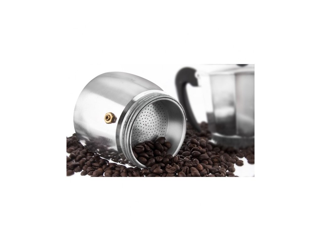 Konvička je vyrobena z kvalitního hliníku, který je v kávovém světě oblíbený pro svou vynikající tepelnou vodivost. Vnitřní stěny konvičky po čase získávají specifickou kávovou patinu, která je pro správnou chuť moka kávy klíčová. Kávovar je vybaven ergonomickým úchytem z tepelně odolného plastu a spolehlivým bezpečnostním ventilem.