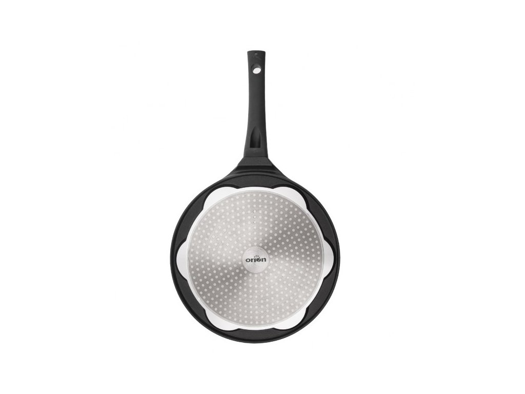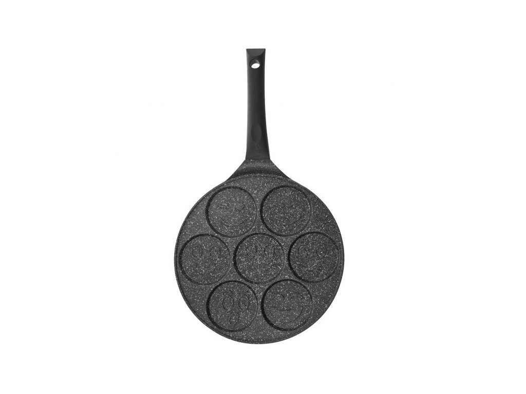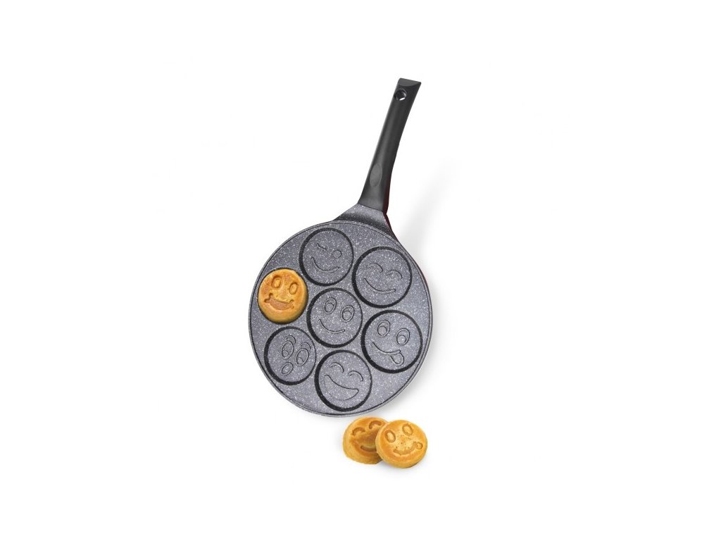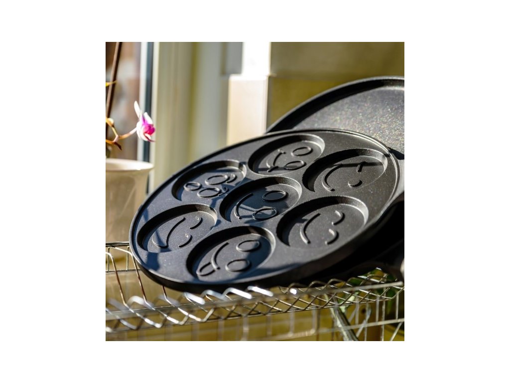 Pánev **Orion GRANDE Smajlíci** o průměru **27 cm** je ideálním pomocníkem pro oživení rodinných snídaní. Tato unikátní pánev je rozdělena do **sedmi samostatných sekcí**, z nichž každá má na dně jiný reliéf veselého obličeje. Během smažení se motiv smajlíka přenese přímo na lívaneček, bramboráček nebo volské oko, což zaručeně vykouzlí úsměv na tváři především dětem. Je vyrobena z **masivního hliníku**, který zajišťuje rychlou a rovnoměrnou distribuci tepla.