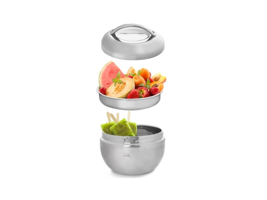Termomísa **Orion APPLE TERMO** o objemu **1,3 litru** je nepostradatelným pomocníkem pro uchovávání a servírování pokrmů v ideální teplotě. Její konstrukce s **vnitřní nerezovou vložkou** a termoizolační výplní mezi stěnami zajišťuje, že vložené jídlo (např. polévky, omáčky, brambory či rýže) zůstane teplé po mnohem delší dobu než v běžném nádobí. Stejně efektivně funguje i pro studené pokrmy, jako jsou saláty nebo chlazené dezerty, které chrání před okolním teplem.
