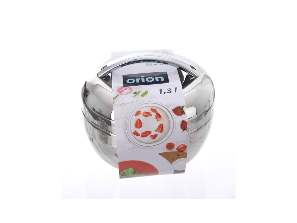 S **termomísou Orion APPLE TERMO 1,3 l** už nebudete muset jídlo opakovaně přihřívat. Tato nádoba udrží vaše kulinářské výtvory čerstvé a teplé až do okamžiku, kdy usednete k jídlu, a zároveň ozdobí váš stůl svým moderním vzhledem.