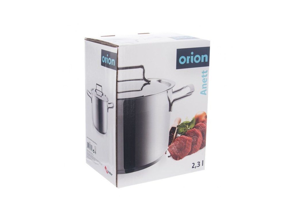 Orion nerezový kastrol ANETT 2,3 l s poklicí Univerzální kastrol pro malou rodinu. Ideální na guláš, ragú a rizota. Robustní nerez, sendvičové dno. Pro indukci.
