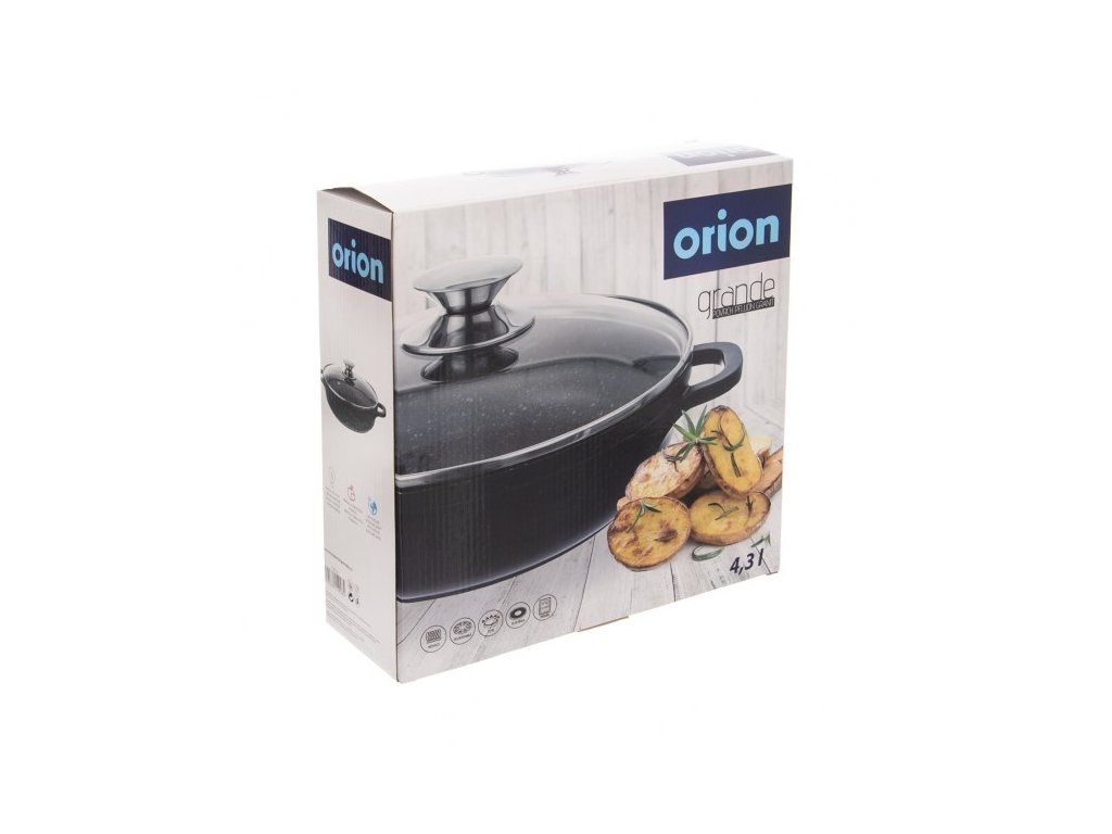 Kastrol **Orion GRANDE** o objemu **4,3 litru** je ideální pro střední a větší rodiny, které si potrpí na pomalu dušená jídla, poctivé guláše nebo ragú. Díky svému nižšímu a širšímu tvaru (typickému pro kastrol) zajišťuje rovnoměrné vaření a efektivní odpařování tekutin, což je klíčové pro dokonalou konzistenci omáček. Tato robustní nádoba kombinuje velkou kapacitu s prvotřídní kvalitou řady GRANDE.