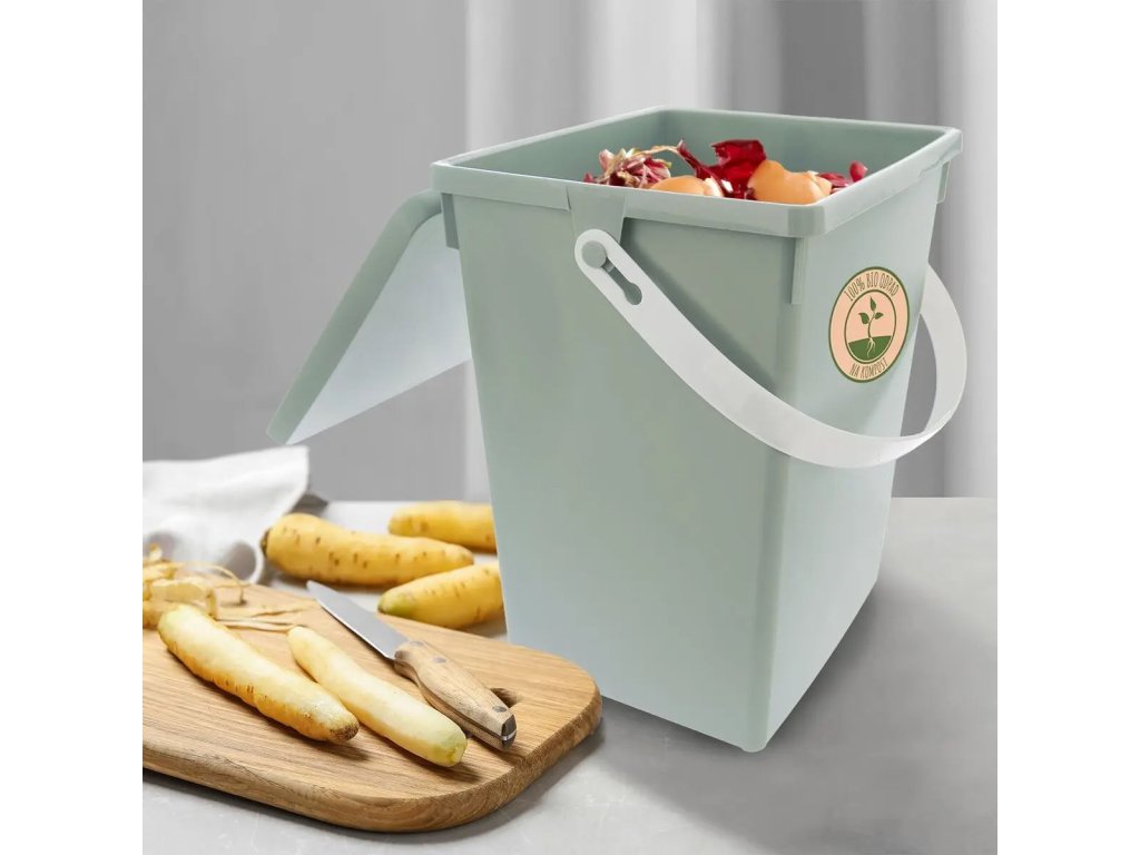 Nádoba je vybavena **přiléhavým víkem**, které efektivně brání šíření pachů a chrání obsah před dotěrným hmyzem, jako jsou octomilky. Koš disponuje praktickým madlem pro snadné přenášení k zahradnímu kompostu nebo do hnědé popelnice na bioodpad. Moderní a nenápadný design v přírodních barvách zajišťuje, že koš esteticky zapadne do každé kuchyně.