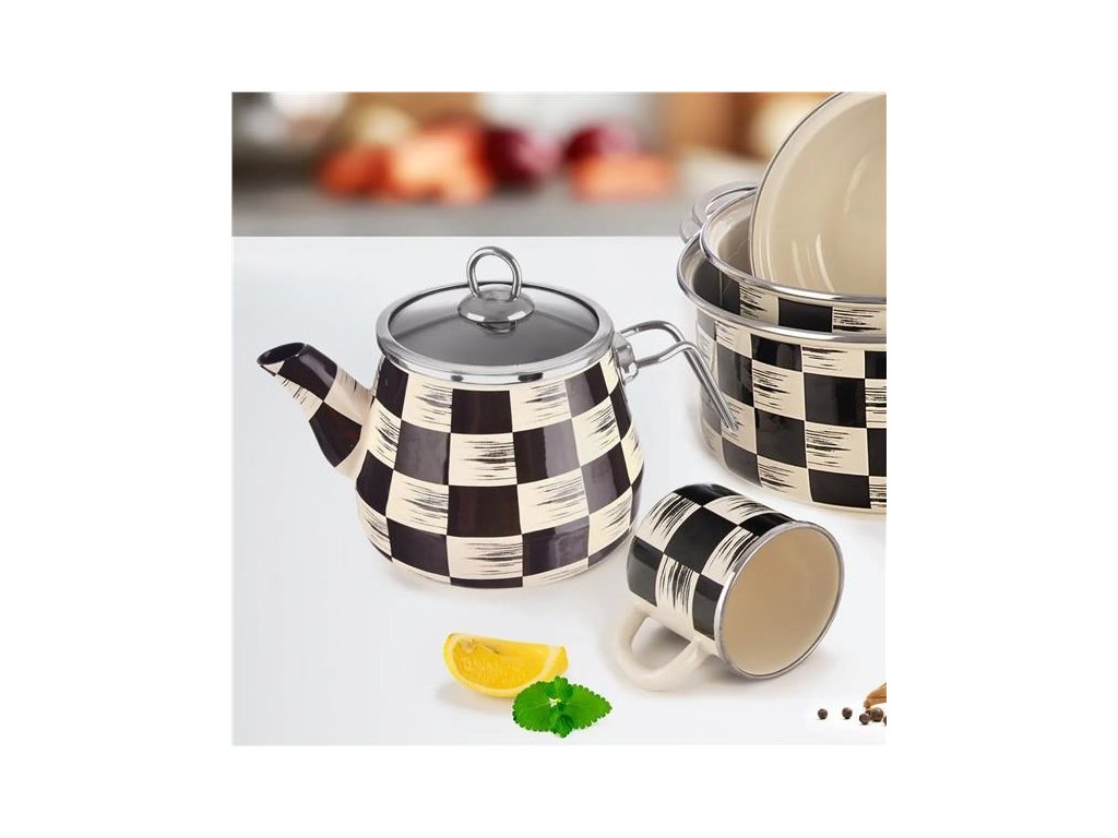Orion smaltovaný čajník ŠACHOVNICE s lemem 2 l