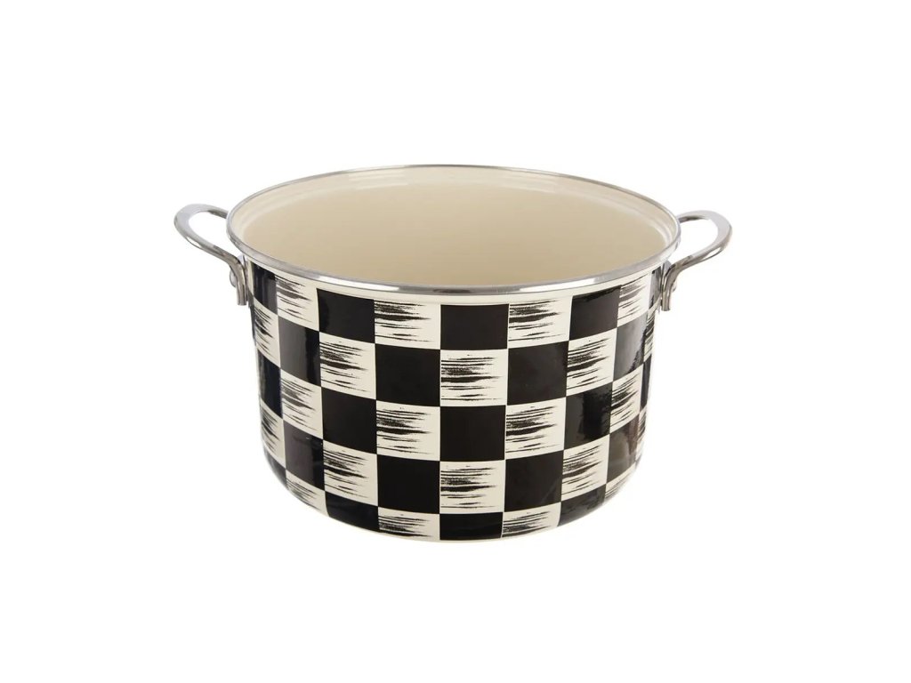 Hrnec **Orion ŠACHOVNICE** s velkou kapacitou **6,5 litru** je navržen pro velké rodinné obědy, večeře, vaření vývarů nebo přípravu jídla do zásoby. Spojuje originální a oblíbený černobílý šachovnicový dekor s osvědčenou kvalitou a hygienou tradičního smaltu. Tato velikost je ideální pro vaření **velkého množství polévek, gulášů, omáček** nebo pro vaření těstovin či brambor.