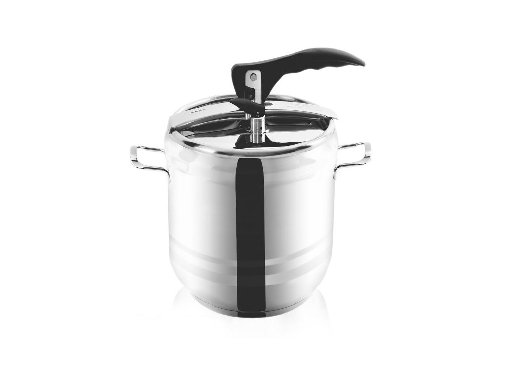 Překonejte omezení prostoru a času. S hrncem Orion PROFI 9 l zvládnete připravit jakékoliv množství jídla s profesionální rychlostí a efektivitou. Vložte tento velkokapacitní nerezový tlakový hrnec do košíku!