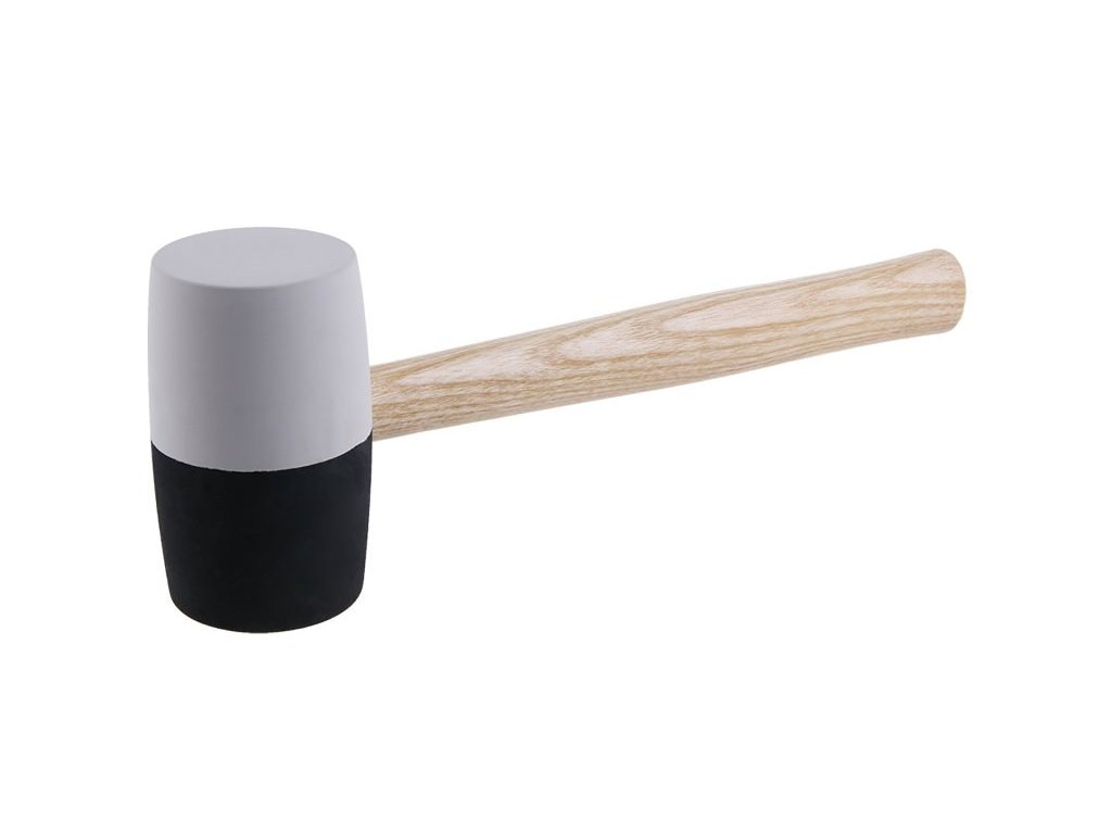 Gumová palice 65 mm s ergonomicky tvarovanou dřevěnou násadou hickory a černobílou gumovou hlavicí pro veškeré mechanické práce. Hmotnost: 0,861 kg