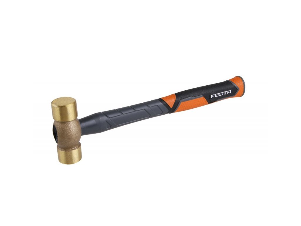 Mosazná palice FESTA 0,5 kg, průměr uderných ploch 30 mm, kvalitní sklolaminátová násada s pogumováním z TPR v úchopové části, zajištěná epoxidovým lepidlem, hlava palice je mosazná. Mosazná palice se používá tam, kde nesmí dojít při úderu k jiskření, usazování dílů atd..Doplňkové parametry