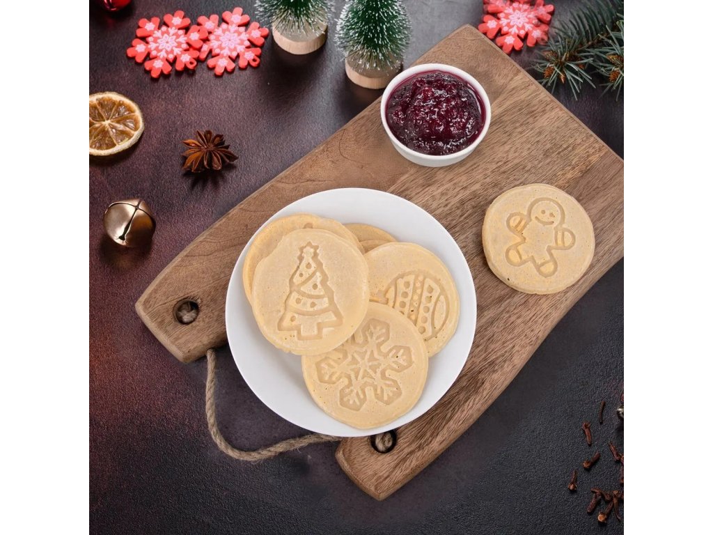 Překvapte rodinu ve vánočním čase lívanečky s motivy Vánoc. Pánev na volská oka/lívance je odlévaná masivní pánev se sníženým okrajem a s velmi kvalitním nepřilnavým povrchem PFLUON GRANIT. Je určena pro přípravu sázených vajec, bramboráčků, lívanečků atd. s minimální potřebou tuku. Čtyři sekce. Materiál: hliník s vynikajícím nepřilnavým povrchem PFLUON GRANIT a s profilovaným dnem, bakelit s designem dřeva (držadlo). Možnost zavěšení. Rozměry: pr. 26,5 cm, v. 1,3 cm, celková v. 6 cm, pr. jedné sekce 10 cm. Vhodná na všechny typy spotřebičů včetně indukce. Vhodná do myčky na nádobí – vlivem agresivních čisticích prostředků může dojít k nepatrné oxidaci dna – tento jev nemá vliv na proces vaření, není zdravotně závadný a nemůže být předmětem reklamace. Doporučujeme použití kuchyňské chňapky.Doplňkové parametry