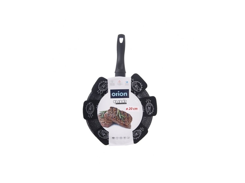Spojení jednoduchého, ale účelného designu s kvalitou nepřilnavého povrchu dělá z této pánve průměru 20 cm základní kousek do každé domácnosti. Korpus této odlévané pánve je tvořen slitinou hliníku, která zajistí tvarovou stabilitu pánve, a je potažen kvalitním antiadhezním povrchem PFLUON GRANIT. Rukojeť je izolovaná, příjemně se drží a usnadňuje manipulaci, prohazování jídla. Tuto pánev ocení jednotlivci i dvoučlenné domácnosti, nebo když chcete připravit menší porce masa, restovat zeleninu, připravovat bramboráky, míchaná vajíčka, palačinky apod. Ať už preferujete zdravé vaření s minimem tuku, šetrnou přípravu jídla pro děti nebo jste milovníky české klasiky, nepřilnavá pánev je základem úspěchu. Součástí výrobku je ochranná podložka mezi pánve, která Vám zajistí, že při uložení nádobí do sebe se povrch pánví i jiných nádob nepoškrábe a nepoškodí - odolná syntetická netkaná textilie. Přednosti pánví GRANDE: kvalitní antiadhezní povrch PFLUON GRANIT zabraňující připékání pokrmů pevná, ergonomická rukojeť zajistí bezpečnou manipulaci kompatibilní se všemi druhy varných desek včetně indukce nevyžaduje tak vysoké teploty rozpálení jako nerez a litina silné sendvičové dno šetří energii možnost zavěšení lze umývat v myčce, avšak vlivem agresivních čisticích prostředků může dojít k nepatrné oxidaci (tento stav nemá vliv na proces vaření, není zdravotně závadný a nemůže být důvodem reklamace). Doporučujeme: Používejte velikost plotýnky úměrnou průměru dna a dřevěné, silikonové nebo nylonové náčiní. Vlastnosti produktu Kolekce: GRANDE Materiál: hliníková slitina s nepřilnavým povrchem Poklice: ne Indukce: ano Nepřilnavý povrch: ano Dvojité dno: ano Barvy: černá Délka (cm): 38 Výška (cm): 4,3 Průměr (cm): 20 Hmotnost (g): 573 Tvar: kulatý S odnímatelnou rukojetí: ne Materiál rukojeti: plast Použití: univerzální Vlastnosti: profilované dno Vhodné do myčky: ano Vhodné do trouby: ne Vaření bez tuku/oleje: neDoplňkové parametry