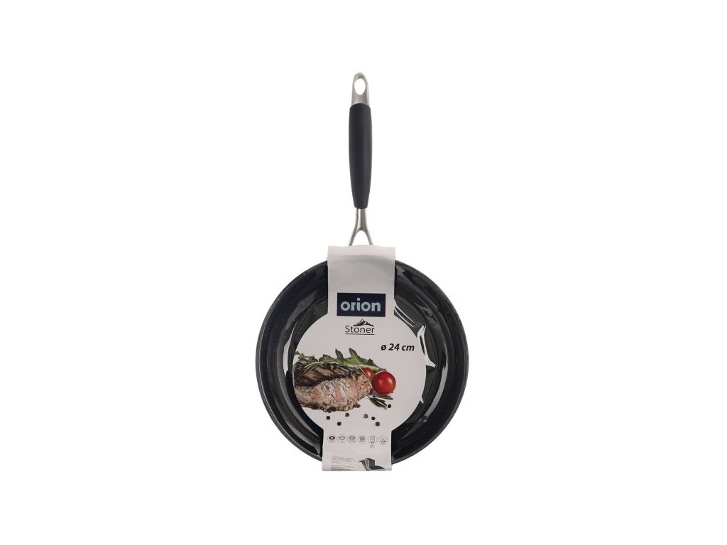 Pánev STONER pr. 24 cm překvapí hrubým povrchem na vnitřní straně, se strukturou a charakterem hrubého neleštěného kamene. Olej nebo výpek se totiž díky zvrásněnému povrchu lépe dostane pod připravované pokrmy a suroviny budou rovnoměrně propečené. Pokrm se rychle zatáhne a nedojde k úniku vitamínů ani výživných látek, navíc s použitím minima tuku. Ideální pro přípravu křupavých, uvnitř šťavnatých kachních prsou, vepřových kostek se slaninou, hovězích steaků, skvělé restované zeleniny a dalších oblíbených jídel. Komfortní manupulaci zajišťuje dobře vyvážená nerezová rukojeť, pevně přinýtovaná k tělu pánve. Rukojeť je opatřena příjemným silikonovým potahem, ten zamezí vyklouznutí pánve z ruky. Přednosti pánví STONER: kvalitní povrch zabraňující připalování pokrmů pevná nerezová rukojeť se silikonovým potahem zajistí bezpečnou manipulaci kompatibilní se všemi druhy varných desek včetně indukce lze použít i pro zapékání, dotažení masa v troubě až do 200 °C dokonalá vodivost eliminuje ztrátu tepelné energie, dochází také k úspoře času nevyžaduje tak vysoké teploty rozpálení jako nerez a litina, rozehřívat se doporučuje postupně možnost zavěšení snadné čištění, možno umývat v myčce Doporučujeme: Používejte velikost plotýnky úměrnou průměru dna a dřevěné, silikonové nebo nylonové náčiní. Při silném rozpálení používejte chňapku. Vlastnosti produktu Kolekce: STONER Materiál: hliníková slitina s nepřilnavým povrchem Poklice: ne Indukce: ano Nepřilnavý povrch: ano Dvojité dno: ano Barvy: černá Délka (cm): 46 Výška (cm): 4,5 Průměr (cm): 24 Hmotnost (g): 869 Tvar: kulatý S odnímatelnou rukojetí: ne Materiál rukojeti: silikon, nerezová ocel Použití: univerzální Vlastnosti: hrubý povrch Vhodné do myčky: ano Vhodné do trouby: ano Vaření bez tuku/oleje: neDoplňkové parametry