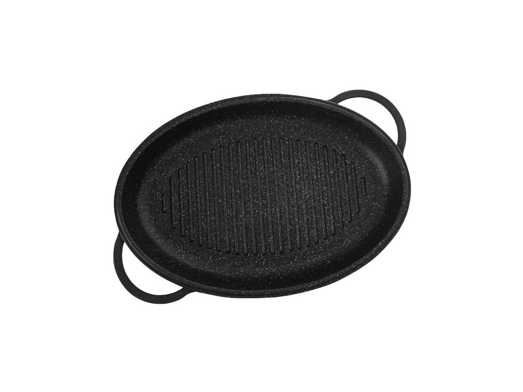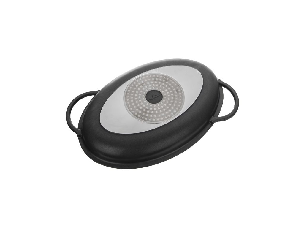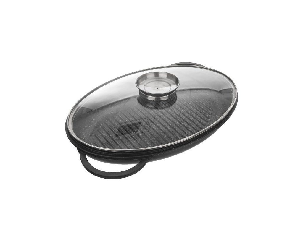 Perfektní kombinaci pečení s minimálním množstvím tuku v troubě a aromatizované vaření na všech typech sporáků včetně indukce, nabízí tento nízký pekáč GRANDE . Díky rozměru 43x30x10 cm a mimostředně umístěným úchytům se pohodlně vejde do běžné kuchyňské trouby. Pekáč o vnitřním rozměru 38x25x5 cm lze použít jako klasický pekáč, díky strukturovanému povrchu připravíte báječné opečené steaky, grilovanou zeleninu nebo žampiony. Skleněná poklice s aroma úchytem umožní jemné dávkování tekutých dochucovadel, olejů, vína a marinád. Přednosti aroma pekáče: vyrobeno ze slitiny hliníku potaženého kvalitním antiadhezním povrchem PFLUON GRANIT, z vnější strany je opatřen nepřilnavým povrchem PTFE. pevné rukojeti zajistí bezpečnou manipulaci nádobí je kompatibilní se všemi druhy varných desek včetně indukce je určen pro pečení, zapékání a gratinování v troubě při teplotách do 230 °C, s poklicí až do 200 °C hliníkové tělo pekáče je výborným vodičem tepla, proto lze troubu vypnout s předstihem a nechat pokrm "dojít" skleněná poklice je opatřena aroma úchytem, do něhož můžete nalévat víno, aromatizované oleje a dochutit pokrm bez nutnosti odklopení poklice lze jej umývat v myčce nádobí, avšak vlivem agresivních čisticích prostředků může dojít k nepatrné oxidaci (tento stav nemá vliv na proces vaření, není zdravotně závadný a nemůže být důvodem reklamace). Doporučujeme: při intenzivním ohřevu používejte chňapky. Pokud pekáč použijete na sporáku, zvolte velikost plotýnky úměrnou průměru dna a dřevěné, silikonové nebo nylonové náčiní. Vlastnosti produktu Kolekce: GRANDE Materiál: hliníková slitina s nepřilnavým povrchem Poklice: ano Materiál poklice: sklo, nerezová ocel Indukce: ano Nepřilnavý povrch: ano Barvy: černá Délka (cm): 43 Šířka (cm): 30 Výška (cm): 5,5 Výška s poklicí (cm): 10 Hmotnost (g): 2,400 Materiál ucha: hliníková slitina Vhodné do myčky: ano Vhodné do mikrovlnky: ne Vhodné do trouby: anoDoplňkové parametry