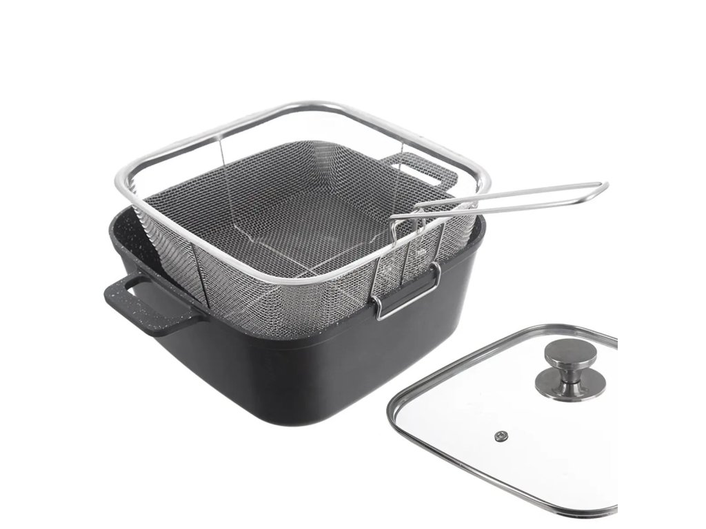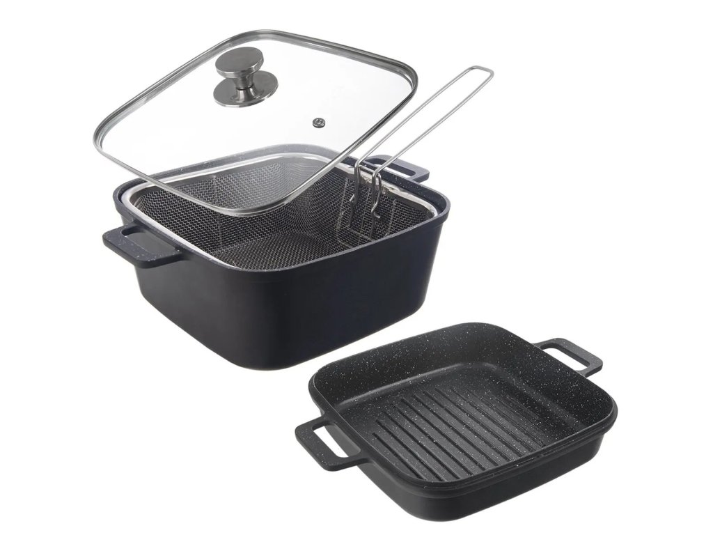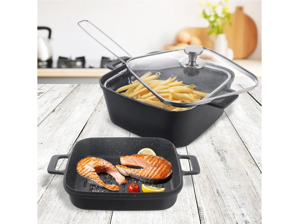 Pekáč GRANDE oboustr.+fritéza 32,5x24,5x16,5 cm skl. víko