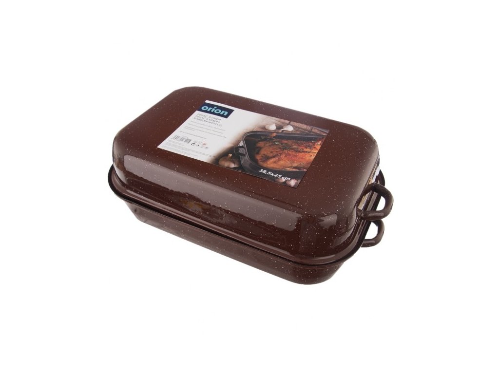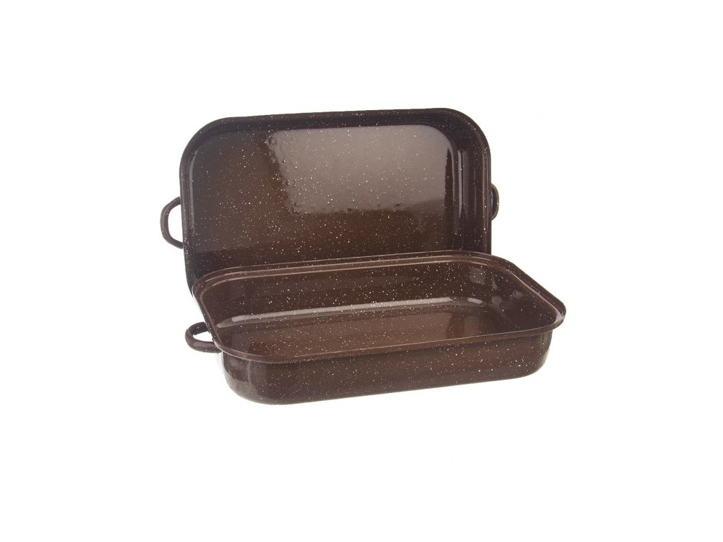 Kvalitní oboustranný pekáč s hnědým smaltovaným povrchem, který si oblíbily už naše babičky. Ocelový základ pokrývá smalt, tedy tavenina podobná sklu a vytváří tak odolný, zcela zdravotně nezávadný povrch. Šťavnaté pečené maso, nádivky, nákypy apod. pečeme přikryté poklopem, po sejmutí víka se vytvoří krásná kůrčička. Klasické kynuté buchty jako z pohádky a jiné dobroty lze péct samostatně v obouch dílech, víko tak bude sloužit jako samostatný pekáč o čistém rozměru pečicí plochy 38,5x25x7 cm a dobře zapadne do lemu spodní nádoby. Celkový rozměr obou dílů i s držadly je 42,5x25x13cm. Přednosti smaltovaných plechů: odolný smaltovaný povrch v moderním provedení pevná držadla pro snadnou manipulaci, doporučujeme používat chňapky plech dobře vede teplo vhodný do elektrické, horkovzdušné i plynové trouby jednoduchá údržba - stačí umýt běžným způsobem nebo v myčce nádobí Vlastnosti produktu Kolekce: BROWN Materiál: smaltovaný plech Poklice: ano Materiál poklice: smaltovaný plech Indukce: ano Nepřilnavý povrch: ne Barvy: hnědá Délka (cm): 42,5 Šířka (cm): 25 Výška (cm): 7 Výška s poklicí (cm): 13 Hmotnost (g): 2 235 Materiál ucha: smaltovaný plech Vlastnosti: oboustranný pekáč Vhodné do myčky: ano Vhodné do mikrovlnky: ne Vhodné do trouby: anoDoplňkové parametry