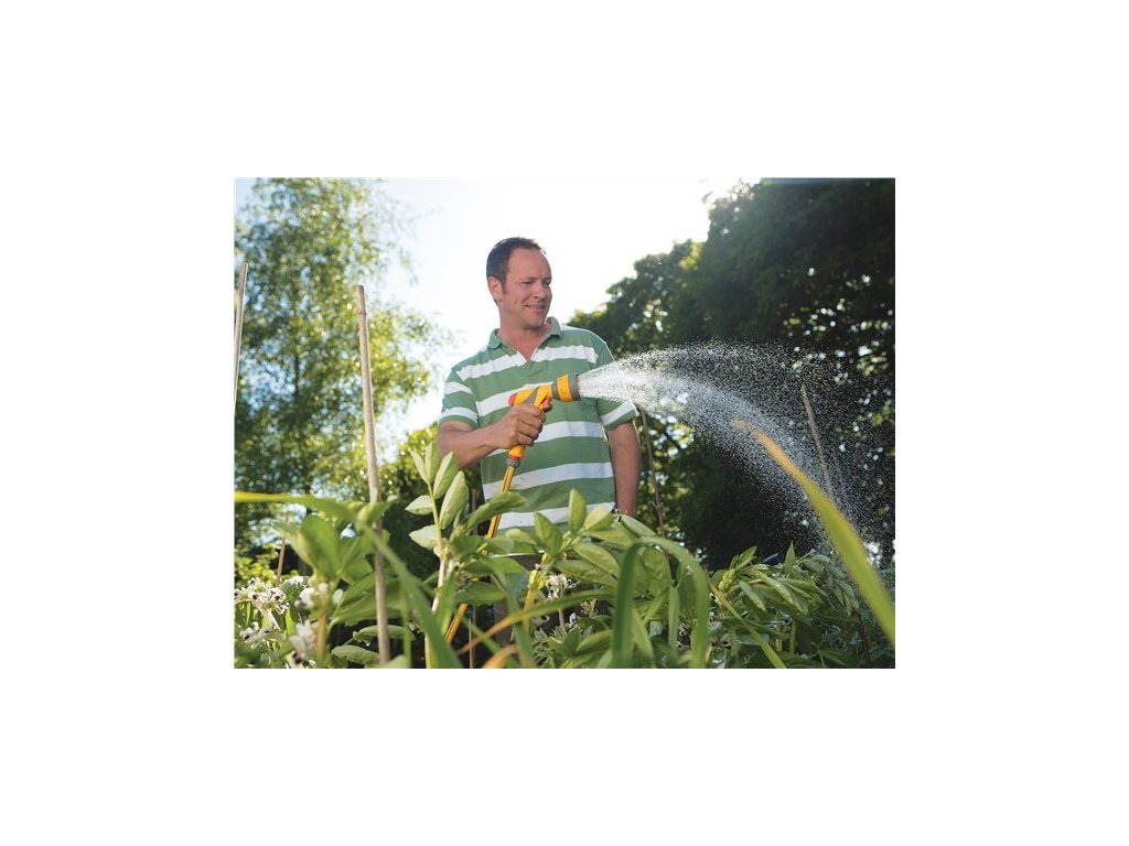 Hlavní výhody: Vysoce kvalitní pocit díky měkké ergonomické rukojeti Variabilní ovládání průtoku spouště, čím silněji stisknete, tím více vody dostanete Uzamykatelná průtoková spoušť minimalizující plýtvání vodou Šest vzorů postřiku pro prvotřídní úklidové a zahradnické úkoly Víceúčelová stříkací pistole Plus kombinuje fantastický vzhled, pohodlnou měkkou ergonomii s řadou skutečně užitečných, špičkových vzorů stříkání. Patentovaná variabilní regulace průtoku spouště – Čím silněji spoušť stisknete, tím více vody dostanete. Dvoustupňová blokovací spoušť – Uzamčení při 100% průtoku a 40% průtoku. Šest vzorů stříkání – Kužel pro jemné zavlažování, Výkonná tryska na čištění, Rychlé plnění k plnění kbelíků a konví, Jemná růže pro jemné zavlažování, Plochý k oplachování mýdlem z aut a Jemná mlha pro sazenice.Doplňkové parametry