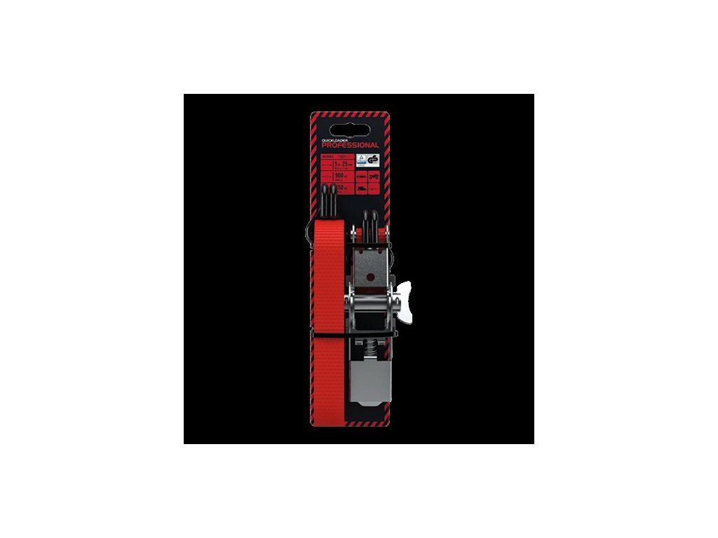 Upevnění QUICKLOADER® Professional QPL900HD zajišťuje lehký náklad. • Ocelové dvojité J-háky • Otevírací křídlo pro snadnější a rychlejší manipulaci • Pískované pro odolnost a bezpečnost V souladu s RoHS Premium Metal & Treatment • PAH zdarma • Pevnost v lomu 900 kg • Délka popruhu 5 metrů • Šířka popruhu 25 milimetrů balení 1ksDoplňkové parametry