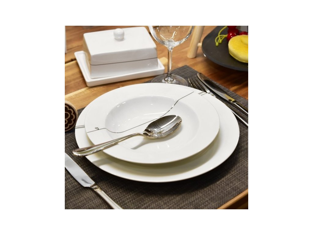 Lesklé nerezové příbory v jednoduchém, minimalistickém designu a elegantní zaoblenou spodní částí, která se příjemně drží v ruce. Jsou vhodné pro každodenní stravování i pro speciální, slavnostní příležitosti. Lze je umývat v myčce nádobí, pro zachování krásného vzhledu ale doporučujeme umývat ručně. Sada obsahuje: 6x nůž 6x vidlička 6x polévková lžíce 6x čajová lžička Vlastnosti produktu Materiál: nerezová ocel Hmotnost (g): 1135 Použití: příborový Vlastnosti: sada Vhodné do myčky: ano Pro děti: neDoplňkové parametry