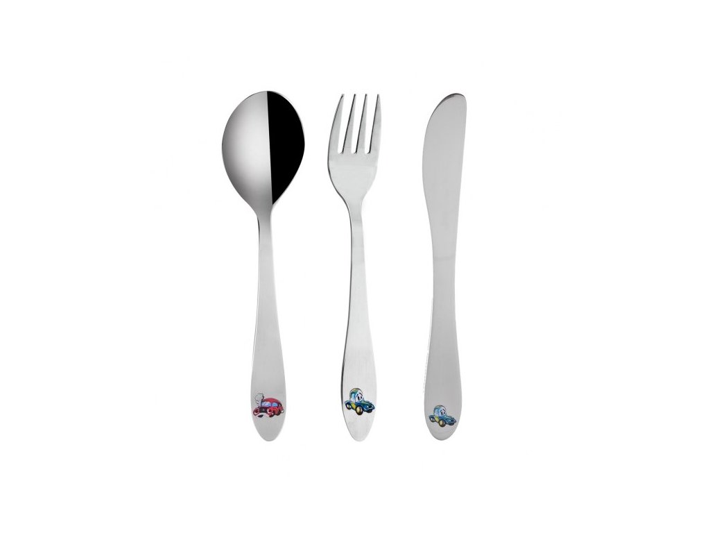 Příbory s motivem autíčka slouží pro nácvik správného stolování. Svou velikostí a váhou jsou uzpůsobeny malým dětským ručkám. Přednosti dětských příborů: kvalitní celonerezové provedení možnost mytí v myčce Upozornění: Příbor není hračka, je vhodný pro děti od 3 let. Lze mýt v myčce, ale s ohledem na barevný potisk doporučujeme ruční umývání. Vlastnosti produktu Kolekce: AUTO Materiál: nerezová ocel Hmotnost (g): 87 Použití: pro první stolování Vlastnosti: sada Vhodné do myčky: ano Motiv: auto Potisk: ano Pro děti: ano Dárek pro: pro dětiDoplňkové parametry