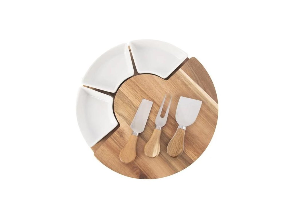 Prkénko akácie pr. 28 cm+kráječe na sýr nerez/akácie+misky ker.