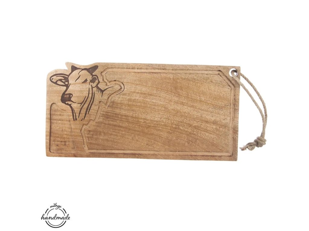 Díky tomuto kuchyňskému prkénku s plastickým dekorem se vaše stolování stane nevšedním zážitkem. Skvěle na něm naservírujete maso z grilu se zeleninou i pečivem. Hluboká drážka po celém obvodu zabrání stékání šťávy z masa, ovoce i zeleniny při přípravě i servírování. Je možné je také zavěsit, vytvoří tak krásnou dekoraci v době, kdy jej nepotřebujete. Snadno se udržuje, stačí jej lehce otřít a je připraveno k dalšímu servírování. Materiál: dřevo mango, jutový provázek. Rozměry: 45x22x2,5 cm.Doplňkové parametry
