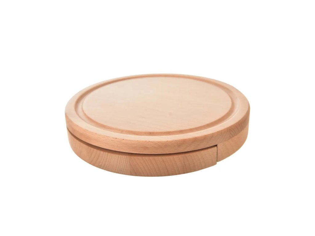 Milovníci tvrdých stařených sýrů, delikátních měkkých sýrů z kravského, ovčího nebo kozího mléka i fajnšmekři, kteří rádi sáhnou po zrajících nebo plísňových sýrech, budou nadšeni. Skládací sada krájecího prkénka z bukového dřeva, které ukrývá 3 kráječe na sýr s čepelí z nerezové oceli 430, může být i pěkným dárkem pro vaše blízké. Prkénko se odsune do strany, tím se otevře vnitřní prostor se třemi šikovnými nástroji. Po použití lze vše umýt v teplé vodě se saponátem a řádně osušit. Obsahuje nůž mandlového tvaru, nůž se širokým rovným ostřím a praktickou vidličku se dvěma hroty k napichování sýrů. Tak si užijte posezení s partnerem nebo přáteli při malé ochutnávce sýrů a dejte si k nim dobré víno nebo pivo. Vlastnosti produktu Materiál: dřevo Výška (cm): 3,5 Průměr (cm): 21,5 Hmotnost (g): 850 Použití: na sýr Vlastnosti: s kráječi na sýr Vhodné do myčky: neDoplňkové parametry