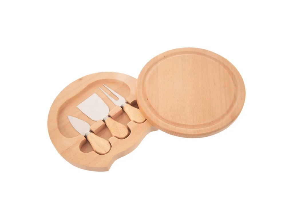 Prkénko dřevo pr. 21,5 cm+kráječe na sýr nerez/dřevo
