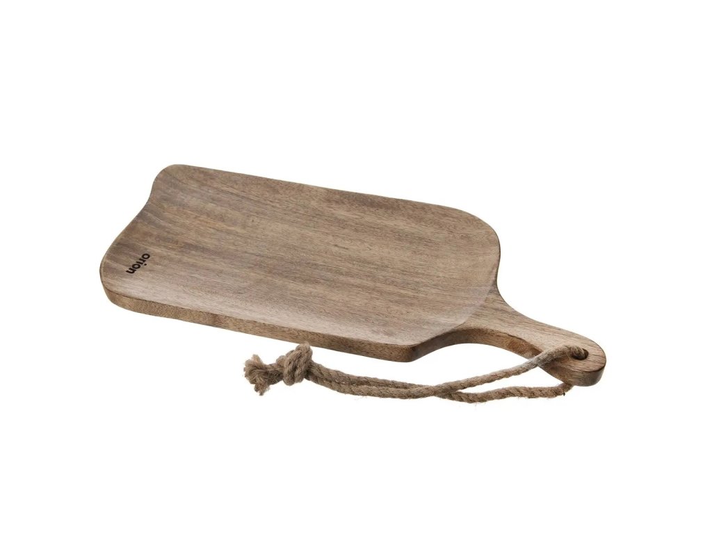 Zajímavé prkénko z mangového dřeva bude stylovým doplňkem na kuchyňský stůl. Velkou parádu udělá i na zahradní párty a grilovačce, díky mírné prohlubni zachytí veškerou šťávu z krájeného masa, zeleniny, např. rajčat apod. Je možné ho i zavěsit za jutový provázek na rukojeti, bude tak stylovou dekorací doma i na chalupě. Při znečištění jej stačí otřít vlhkým hadříkem. Vlastnosti produktu Kolekce: MANGO Materiál: dřevo Délka (cm): 46,5 Šířka (cm): 20 Výška (cm): 2 Hmotnost (g): 625 Tvar: nepravidelný Použití: na krájení, na servírování Vlastnosti: s rukojetí Vhodné do myčky: neDoplňkové parametry