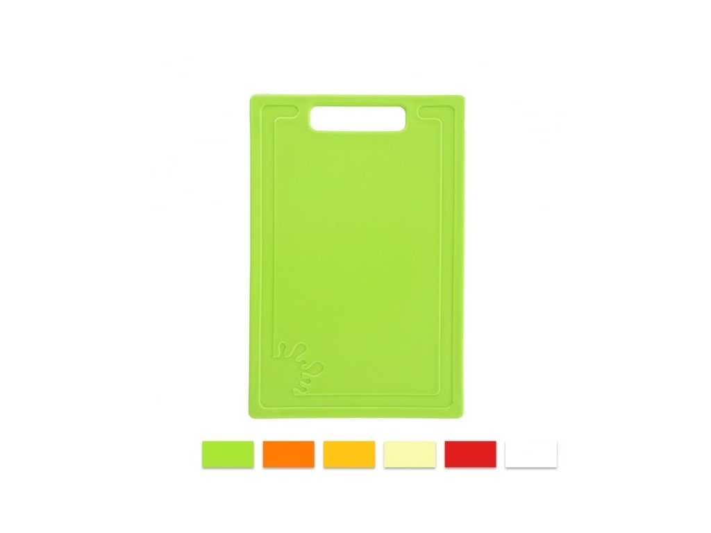 Barevné krájecí prkénko z pevného plastu, opatřené po obvodu krájecí plochy drážkou, která zabrání stékání šťávy z krájených potravin na kuchyňskou linku. To oceníte při krájení masa, vnitřností, např. syrových jater, ale i při přípravě zeleninových salátů z rajčat, měkčí zeleniny a ovoce. Díky použitému materiálu nehrozí bobtnání. Protiskluzové podložky udrží prkénko pevně na místě. Lze mýt v myčce na nádobí a poté uložit do zásuvky nebo jej zavěsit. Dodávané barvy závisí na aktuálních skladových zásobách. Vlastnosti produktu Materiál: plast Barvy: mix Délka (cm): 31,5 Šířka (cm): 20 Výška (cm): 0,5 Hmotnost (g): 327 Tvar: obdélník Použití: univerzální Vlastnosti: protiskluzové, s drážkou Vhodné do myčky: anoDoplňkové parametry
