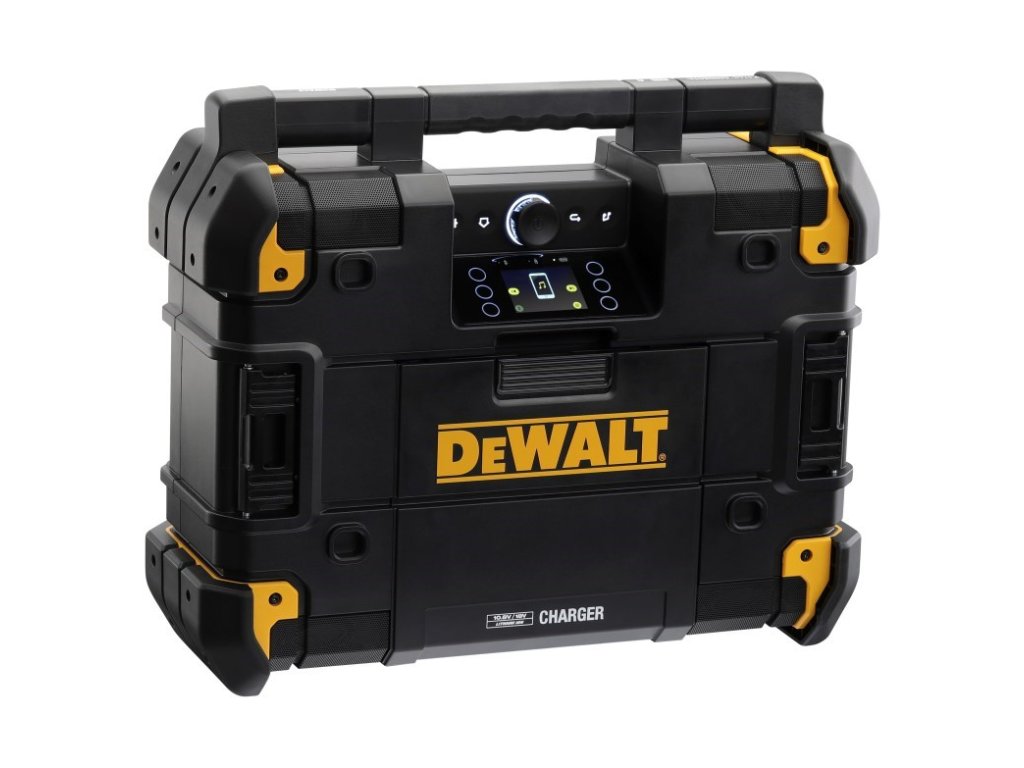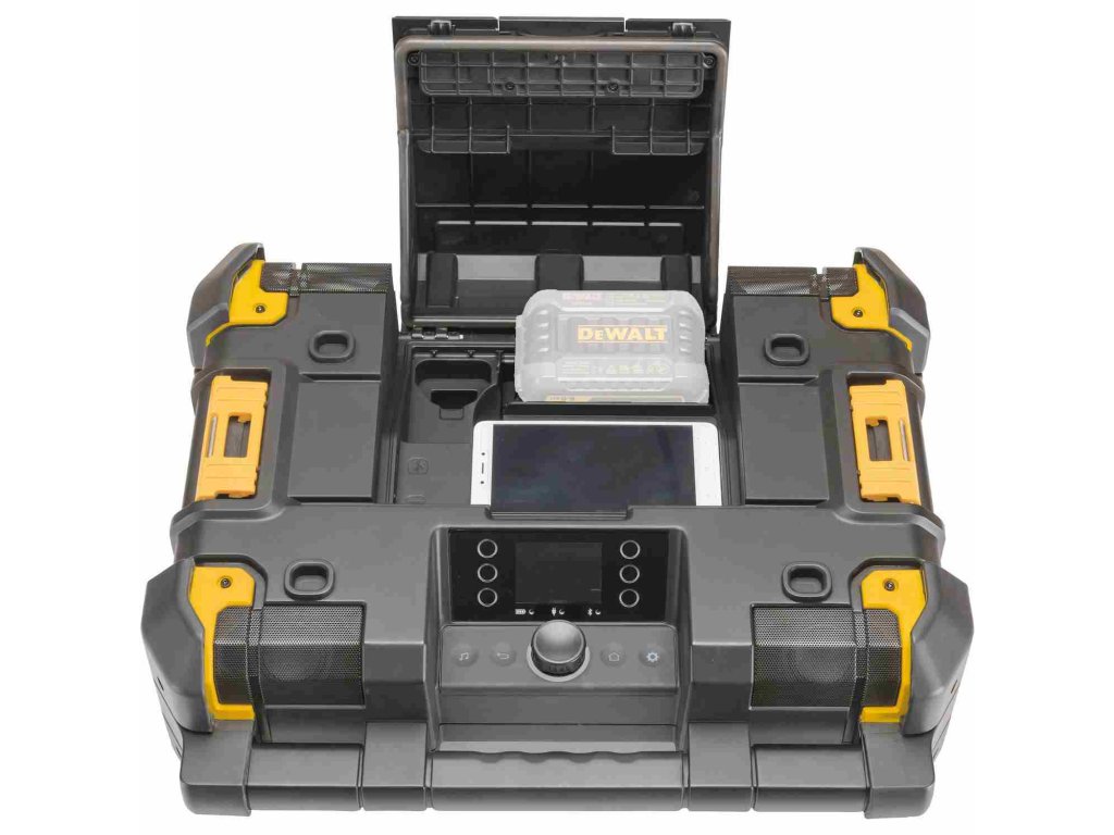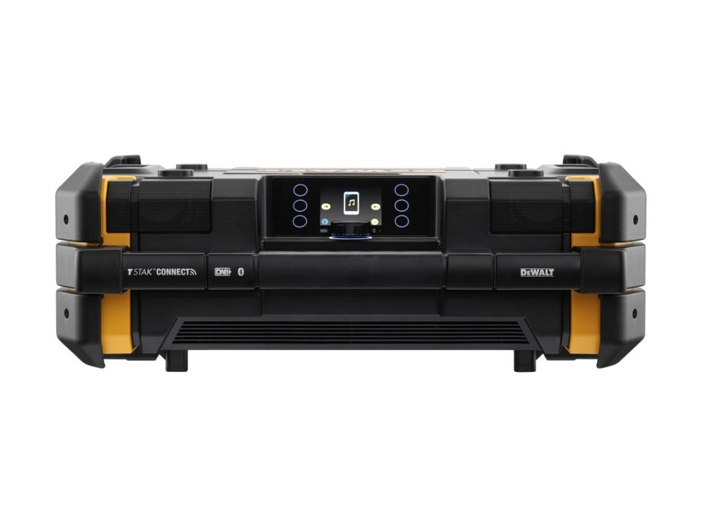Rádio na pracoviště kompatibilní s řadou TSTAK Třída ochrany IP54 zaručuje ochranu proti vnikání vody a prachu Pryžové patky absorbující rázy na všech čtyřech rozích tohoto zařízení Reproduktory 4+1+1 poskytují velmi široký akustický rozsah 2 středně pásmové reproduktory v přední části a 2 v zadní čáti Barevný otočný displej USB nabíječka a port Aux Aplikace iOs a Android na vzdálené ovládání rádia Nabíjí DeWALT akumulátory XR 10,8V-54V Technické parametry: Typ baterie: XR Li-Ion Napájecí napětí: 10,8/14,4/18/54 V Napájecí zdroj: 220 V Tuner: DAB+/FM Vstupy: AUX,Bluetooth Další funkce: USB nabíječka pro externí zařízeníDoplňkové parametry