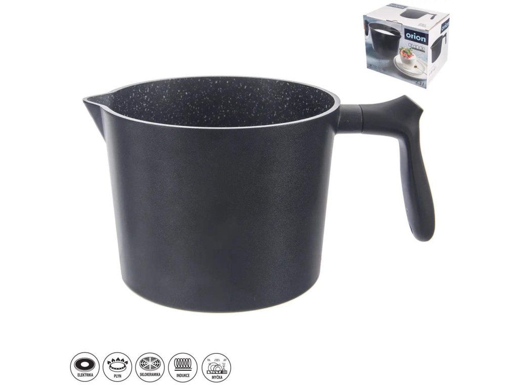 Masivní rendlík/hrnec na mléko s výlevkou s velmi kvalitním nepřilnavým povrchem PFLUON GRANIT. Rendlík se hodí k vaření mléka, pudinku, dětských kaší, pro přípravu omáček, bešamelu, k marinování ovoce, k vaření nudlí do polévky apod. Můžete v něm vařit, smažit, dusit s minimální potřebou tuku. Připravovaný pokrm se nepřichytává. Vhodný na všechny typy spotřebičů včetně indukce. Materiál: hliník s vynikajícím nepřilnavým povrchem PFLUON GRANIT a s profilovaným dnem, plast (bakelit). Rozměry: objem 2,3 l, pr. 17 cm, v. 13 cm. Doporučujeme použití kuchyňské chňapky. U plynových sporáků volte správnou velikost plamene, u elektrických a sklokeramických vařičů je nutné zvolit odpovídající velikost ploténky. Připravené jídlo můžete pohodlně skladovat v hrncích také v chladničce. Lze mýt v myčce na nádobí. Hodí se na něj poklice 122576 z naší nabídky.Doplňkové parametry
