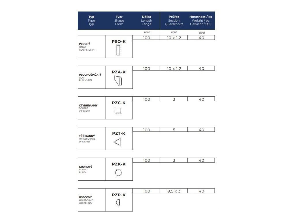 Klíčové pilníky jsou určeny převážně pro jemnější a dokončovací zámečnické práce.