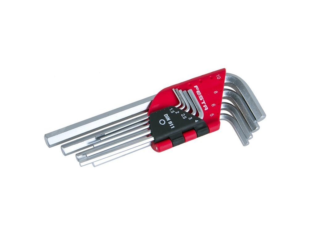 Sada nejpoužívanějších rozměrů L šetihranných klíčů FESTA (imbusů), vyrobených z z kvalitní chromvanadiové oceli, tvrzených v celé délce, standardní délka v praktickém zavíracím pouzdře.