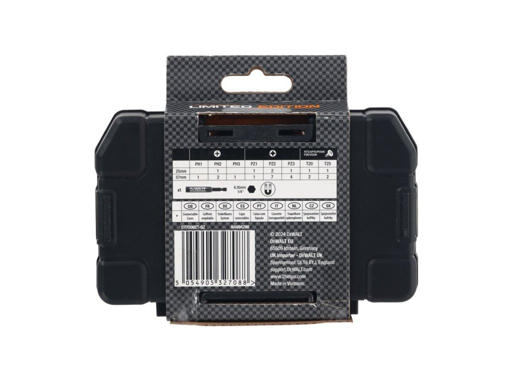 28dílná sada příslušenství FLEXTORQ, v pouzdře Tough Case DeWALT DT70902T • Limitovaná edice Dewalt v designovém provedení McLaren • Tvoří součást systému DeWALT TOUGH CASE a je kompatibilní se všemi sadami TOUGH CASE i s úložným systémem TSTAK • Šroubovací nástavce Flextorq impact ready 57mm • Šroubovací nástavce Flextorq impact ready 25mm • Magnetický držák nástrojů impact ready • Uloženo v praktickém uzavíratelném pouzdřeDoplňkové parametry