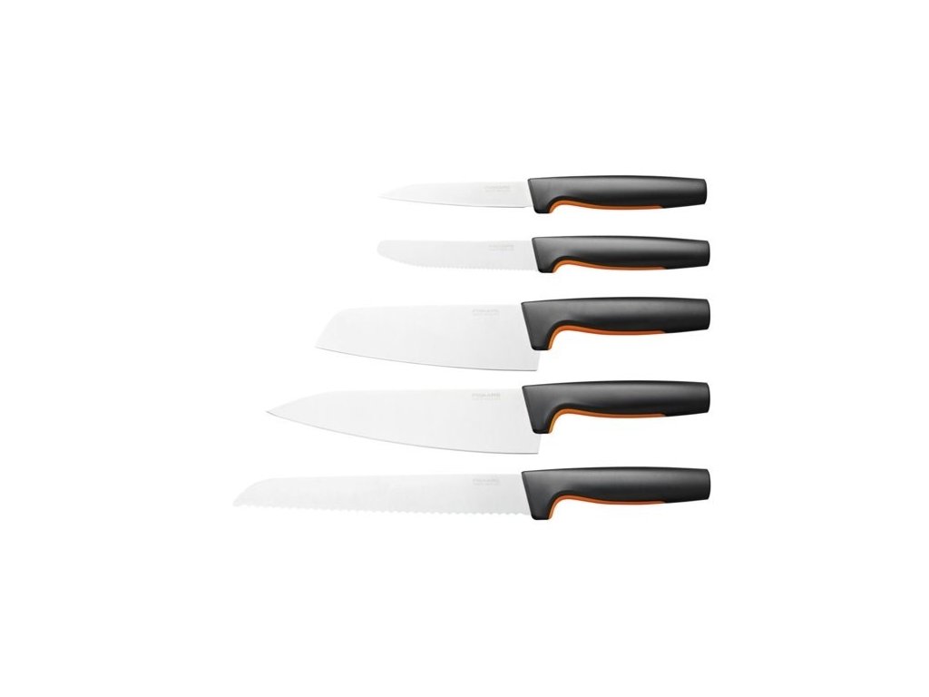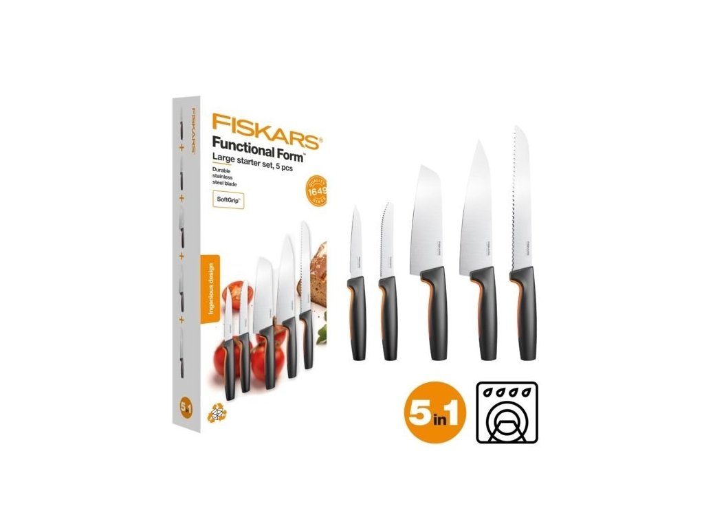Vysoce kvalitní japonská nerezová ocel zajištuje skvělou ostrost a korozivzdornost. Zesílená čepel pro dobré vyvážení nože a jeho pevnost. Dodatečně leštěné ostři zvyšuje výkon čepele. Lze umývat v myčce na nádobí. Bezpečné a neklouzavé uchopení díky materiálu Softouch™Hluboké zahloubení rukojeti zvyšuje ochranu prstu Ergonomicky tvarovaná rukojeť umožnuje různé způsoby uchopení Set obsahuje 1057542 - Okrajovací nůž 11cm 1057536 - Santoku nůž 17cm 1057543 - Snídaňový nůž 12cm 1057534 - Velký kuchařský nůž 21cm 1057538 - Nůž na pečivo 21cmDoplňkové parametry