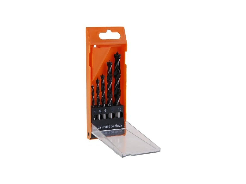 Sada nejpoužívanějších vrtáků 4, 5, 6, 8, 10 mm do dřeva, použití : pro běžné dílenské a kutilské použití, vrtání do dřeva, drřevotřísky, OSB panelů..., balení - folie.Doplňkové parametry