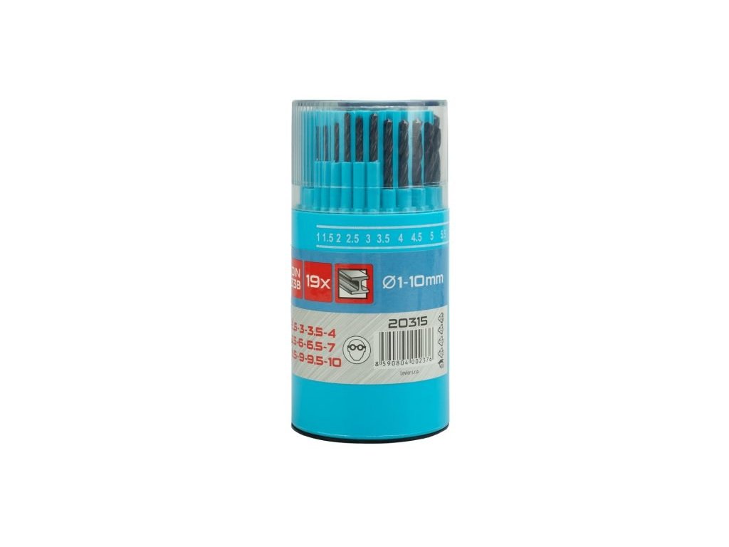 Sada vrtáků HSS DIN 338, RN, je vyrobená z kvalitní rychlořezné oceli (HSS). Přesné vyrobená šroubovice pro kvalitní výkon, přesnost a dobré středění, vybroušení úhlu špičky vrtáku 118°, pro vrtání běžné konstrukční oceli, baleno v PVC krabičce.
