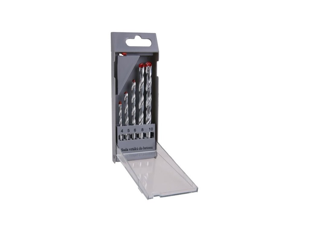 sada nejpoužívanějších průměrů vidiových vrtáků 4, 5, 6, 8, 10 mm s válcovou stopkou použití - pro vrtání do zdiva, betonu balení - plastová krabičkaDoplňkové parametry