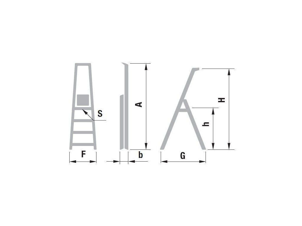 Jednostranné schůdky s poličkou Eurostyl, počet nášlapů vč. plošinky 1x3 až 1x6, rozměry plošinky 264 x 262 mm, max. výška plošinky 0,55 až 1,19 m a šířka schůdků 407 až 480 mm. Počet příček: 6 Délka: 198 cmDoplňkové parametry