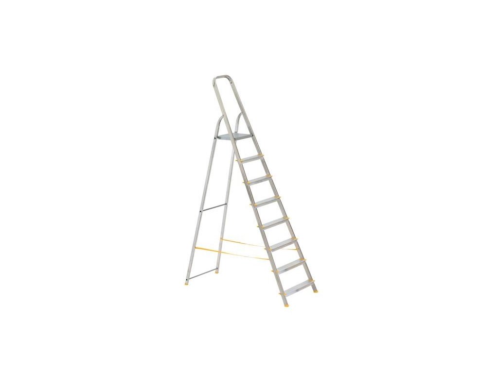 hliníkové schůdky jednostranné EUROSTYL bylo použito odlehčeného materiálu pro snadnou manipulaci atestované českou zkušebnou SZÚ a německou zkušebnou TÜV povolené zatížení je 150 kg na všechny druhy žebříků SPECIFIKACE Počet příček: 8 Výška plošiny: 162 cm Celková délka: 240 cm Výška dosahu osoby: 370 cm Šířka příček: (spodní) 53 cm Hmotnost: 726 kg Povolené zatížení: 150 kgDoplňkové parametry