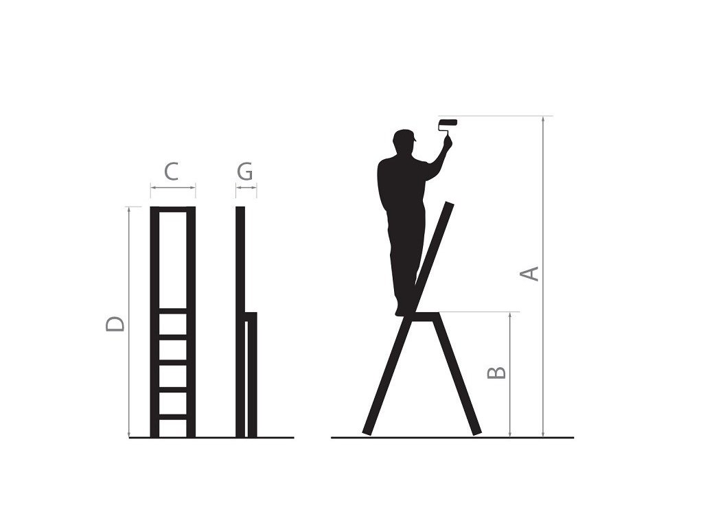 Kompaktní ocelový žebřík s extrémně odolnou konstrukcí. Použitelný pro každou domácnost, ve které pomůže při různém typu práce. Zvýšená bezpečnost je zajištěna protiskluzovým systémem, jako jsou vlnité schody nebo speciální plastové konce nohou. Přes použití pevného a kvalitního hliníku si žebřík zachovává svoji lehkost a jednoduchost skladování spolu s přenášením. Materiál: Hliník Nosnost (kg): 125 Typ spojů: Nýtováno R - Počet příček: 7 A - Pracovní výška (m): 3,4 B - Výška na stání (m): 1,4 C - Šířka žebříku (m): 0,5 D - Délka složeného žebříku (m): 2,15 G - Tloušťka složeného žebříku (m): 0155Doplňkové parametry