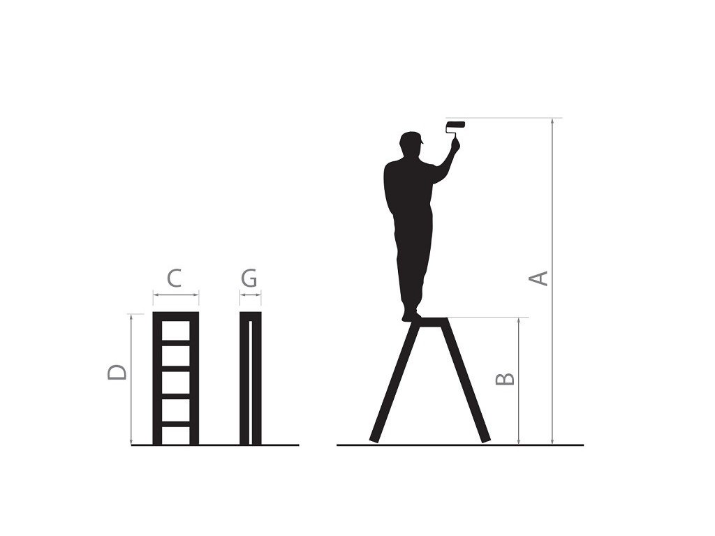 Schůdky Strend Pro DD4, 2x4 stupínkové stupadlo, nosn. 125 kg, ALU, oboustranné, bez držadla Schůdky jsou vyrobeny z nejkvalitnějšího hliníku, který zajišťuje jejich dlouhodobou životnost. Oboustranné schůdky mají mnoho využití pro každodenní malé opravy nebo stavební práce. Výrobek má protiskluzové vlnité schody a speciální podélnou výztuž, která zabraňuje pohybu schůdků během práce. Jsou navrženy pro práci v interiéru, jsou lehké, kompaktní a snadno skladovatelné. Materiál: Hliník Nosnost (kg): 150 Typ spojů: Nýtováno R - Počet příček: 3 A - Pracovní výška (m): 2,54 B - Výška na stání (m): 0,54 C - Šířka žebříku (m): 0,4 D - Délka složeného žebříku (m): 1,21 G - Tloušťka složeného žebříku (m): 0,155Doplňkové parametry