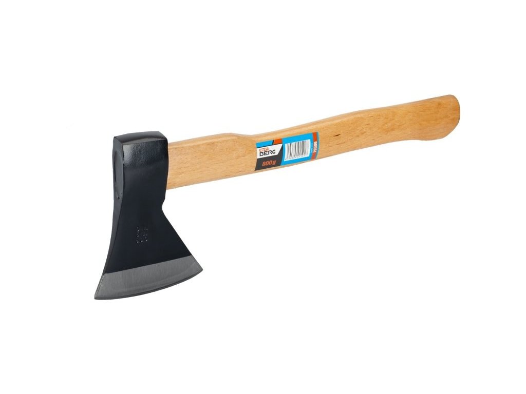 Sekera 800g s ergonomicky tvarovanou dřevěnou násadou. Kruhový klín. Sekera je v praxi používána především k sekání či tesání do dřeva a ke kácení stromů.