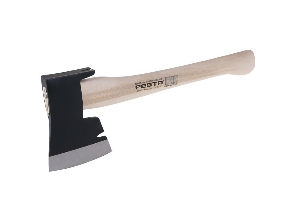 Tesařská sekera 700g FESTA s ergonomicky tvarovanou dřevěnou rukojetí. Tyto sekery mají rovné, dlouhé a tenké ostří, čímž vzniká rovnoměrná sečná plocha. V hlavě sekery je vykován oblouk, díky kterému se dá sekera držet bezprostředně nad ostřím, čímž se zvyšuje stabilita a přesnost. Zadní strana sekery se dá použít jako kladivo, násada je uzpůsobena každému uchopení ruky. Rovný a plochý tvar sekery se hodí výborně k opracovávání suchého dřeva. Jasanová násada, kruhový klín.Doplňkové parametry